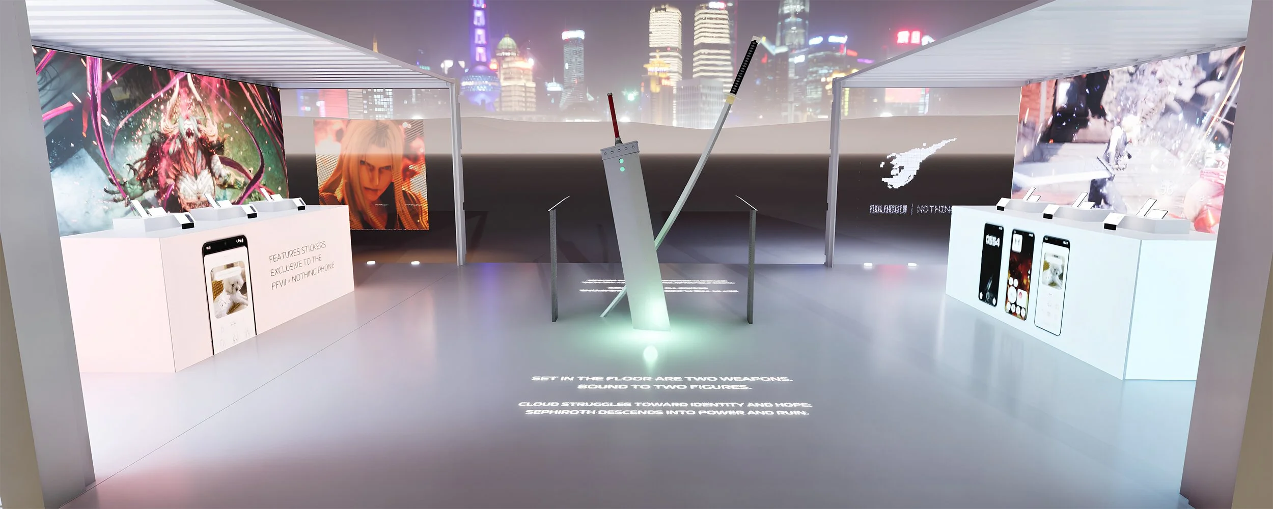 A pop-up experience of a product launch between Final Fantasy VII and Nothing. The identity of both brands is preserved through the collab’s sleek and futuristic feel while providing an engaging and immersive experience.